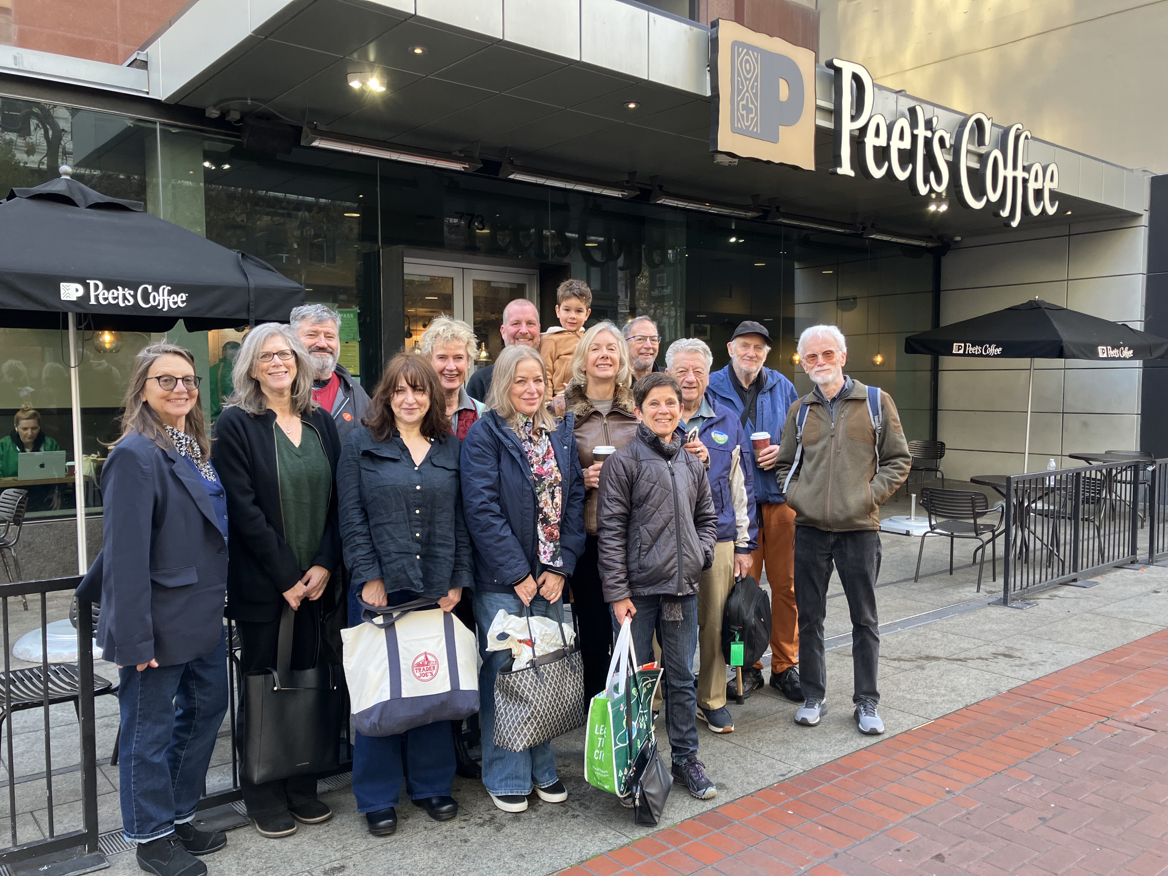 Another group of Field Trippers met the Muni Riders at Peet's on Market St. downtown. Kelly Lowry, Kay Young, Paul Martin, Patricia Cericola, David Lansky, Alan Blackwood, and David Bowen (L to R) joined the QuickTricks caravan to the NABC. We all picked up our NABC swag and headed to the tables to play some bridge!